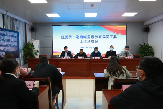 根据区委统一部署,2022年3月30日,区委第二巡察组对区教育局党工委开展常规巡察动员会召开。会前,区委巡察工作领导小组成员、区纪委常委、区委巡察办主任安文喆向区教育局党工委书记传达了临渭区委关于本轮巡视巡察工作精神。会上,区委第二巡察组组长詹庆伟就即将开展的常规巡察工作作了动员讲话,区委巡察工作领导小组成员安文喆就配合做好巡察工作提出要求,区教育局党工委书记、局长邢唯远主持会议并作表态发言。
