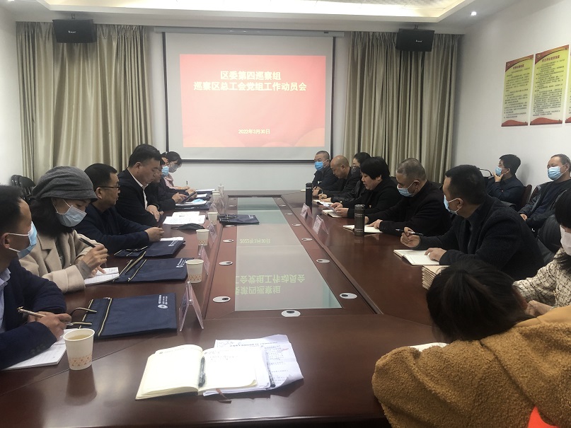 区委第四巡察组副组长刘江宏及巡察组全体成员,区纪委监委派驻区委办负责同志、区总工会全体干部参加会议。