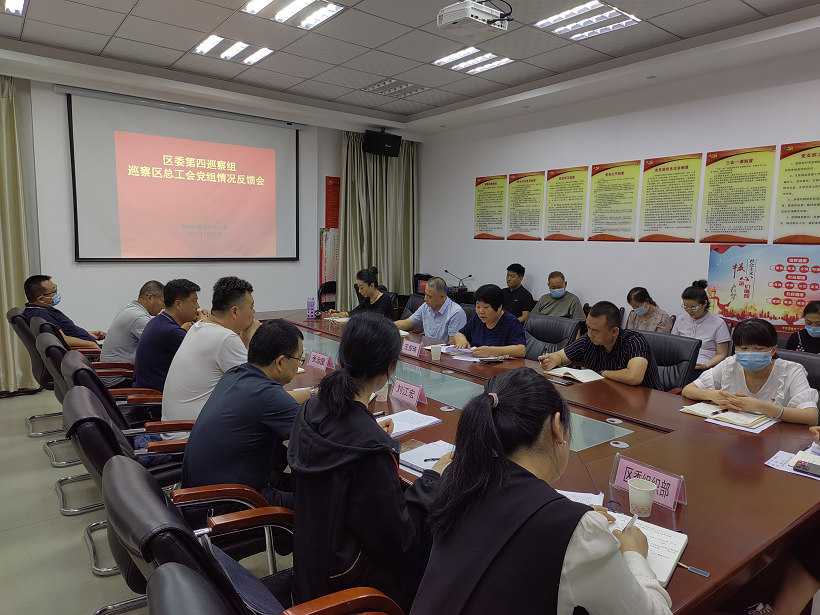 根据区委巡察工作领导小组安排,7月19日区委第四巡察组向区总工会党组反馈巡察情况。组长王卫宏代表巡察组向区总工会党组进行了反馈,区纪委副书记、监委副主任、区委巡察工作领导小组成员张治国就巡察整改工作提出明确要求,区总工会党组书记、常务副主席王俊琦主持会议并作了表态发言。