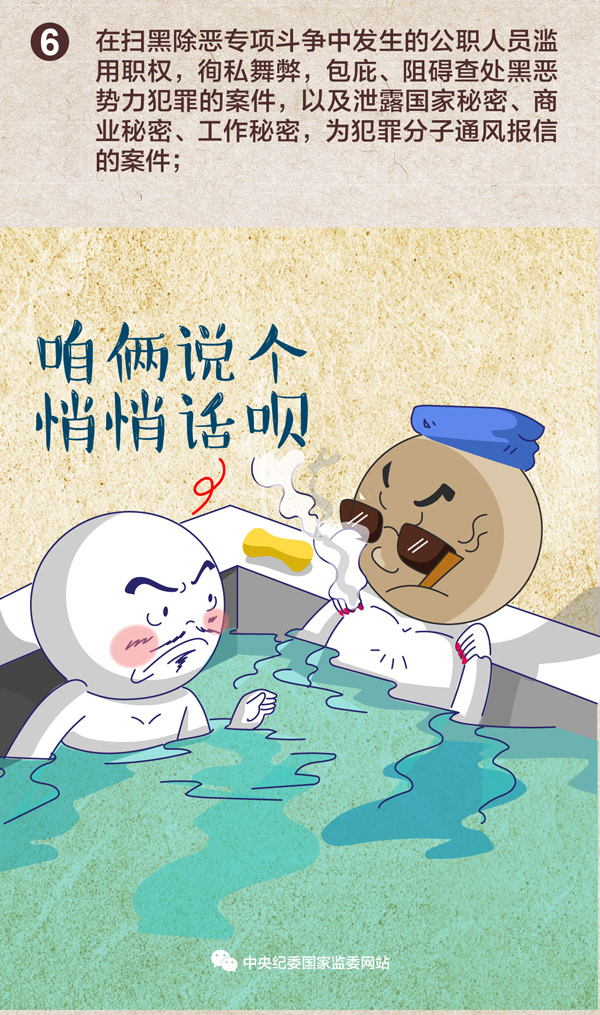 近日,国家监委会同最高法、最高检、公安部、司法部研究制定了《关于在扫黑除恶专项斗争中分工负责、互相配合、互相制约严惩公职人员涉黑涉恶违法犯罪问题的通知》。《通知》要求,各级监察机关、人民法院、人民检察院、公安机关应聚焦黑恶势力违法犯罪案件及坐大成势的过程,严格查办公职人员涉黑涉恶违法犯罪案件。重点查办以下案件: