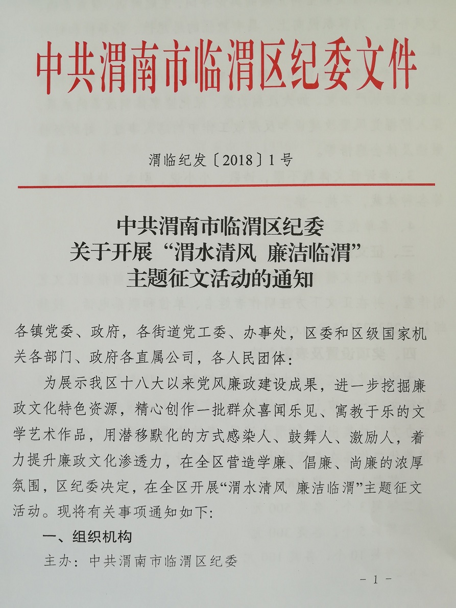 关于开展“渭水清风 廉洁临渭”主题征文活动的通知